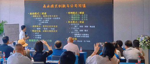 何为公司价值?刘圻教授向学员们展示了公司价值的构成模型,在该模型里,商业模式、管理模式与资本模式共同构成公司价值,其中商业模式和管理模式是该模型的基础,支撑起企业的资本模式,而公司价值则来源于三大模式的协同。